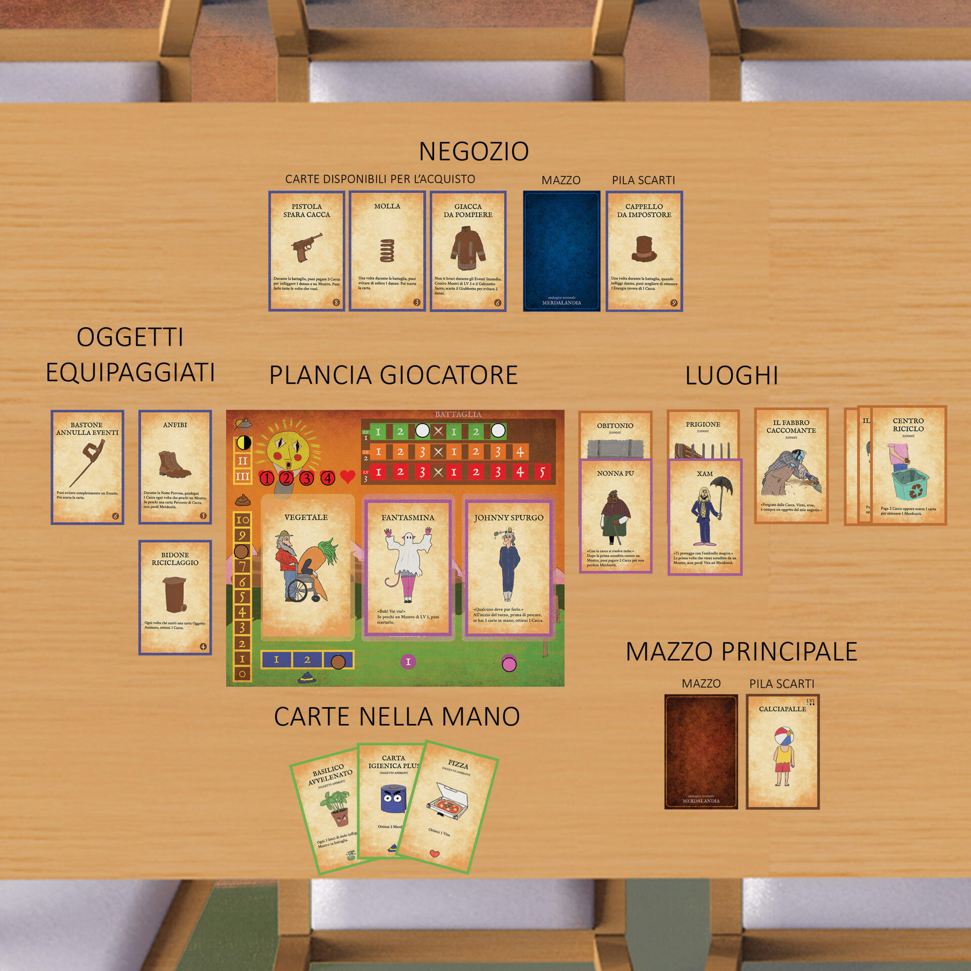 Carta dopo carta, incontrerai Mostri, Oggetti Animati, Eventi, Luoghi e Alleati.